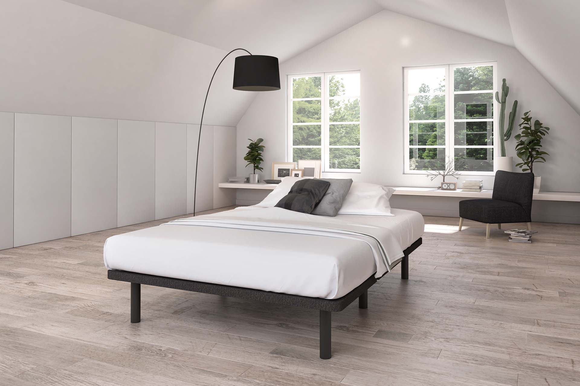 Découvrez la base de lit plateforme smart, un lit plateforme qui révolutionne le confort et la simplicité. Sans besoin de sommier, ce cadre offre un soutien solide pour toutes tailles de matelas, de Simple à King.